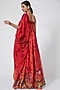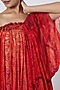 Featuring a red draped bustier dress in cotton silk chanderi and organza base with thread, beads, and shell embroidery.