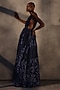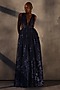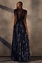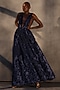 Featuring a sapphire blue maxi dress in lace base with a plunging neckline, applique and floral detail. Accentuate it with statement earrings and block heels for cocktail parties.