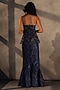 Featuring a sapphire blue structured corset in lace base with sequins and bugle bead embroidery. Accentuate it with skirt, statement earrings and block heels for cocktail parties.