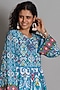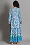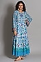 Featuring a turquoise tiered dress in pure cotton base with ikat work, embroidery, gathers, print, side pockets and lace detailing.