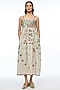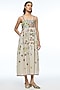 Beige Handloom Cotton Linen Applique Embellished Strappy Dress