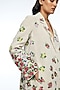 Featuring a beige knee-length jacket in linen base with applique embroidery. Accentuate it with pants, statement earrings and heels for a complete look.