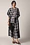Featuring a black oversized checkered shirt in handloom cotton base with a v-neckline, band collar, cuffed sleeves and hand-stitch detail. Accentuate it with pants. dangler earrings and heels for a complete look.