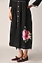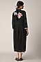 Featuring a black maxi dress in handloom linen base with a band collar, chest pockets, rose applique embroidery and selvedge detail. Accentuate it with pants. dangler earrings and heels for a complete look.
