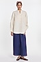 Featuring an ivory button-down shirt in cotton linen base with a band collar and curved hem. Style it with linen pants, delicate stud earrings and comfortable flats for a stylish ensemble, ideal for casual outings, workdays or relaxed brunches.