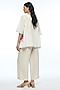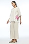 Featuring an ivory top in handloom cotton base with a round neckline, selvedge detailing at hem, open sleeves and rose applique embroidery. Accentuate it with pants, statement earrings and heels for a complete look.