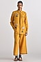 Featuring a mustard yellow front open shirt in handloom linen base with floral applique embroidery. Accentuate it with minimal jewellery and heels for a complete look.