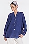 Featuring a navy blue button-down shirt in handloom cotton linen base with gathered sleeves and a band collar. Style it with linen pants, delicate stud earrings and comfortable flats for a stylish ensemble, ideal for casual outings, workdays or relaxed brunches.
