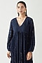 Featuring a navy dress in cotton silk base with sequins embroidery and a v-neck.