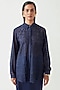 Featuring a navy shirt in cotton silk base with embroidery and smocking details.