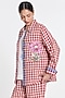 Featuring a red jacket in handloom cotton linen base with a collar, floral embroidery, plackets, cuffs and blue check detailing. Accentuate it with classic denims, minimal hoop earrings and ankle boots for a stylish ensemble, ideal for casual outings, brunch dates or evening get-togethers.