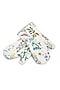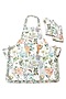 Featuring a aqua blue and ivory apron in canvas base with titli print. It is paired with a matching set of oven mittens.