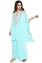 Aqua Crepe Printed & Embroidered Kaftan Set