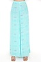 Featuring an aqua kaftan in crepe base with embroidery and print, including tassel detailing. It is paired with matching palazzo pants.