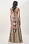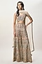 Featuring a beige choli in georgette base with mirror and thread embroidery, including tassel tie details. It is paired with embroidered sharara and a sheer mukaish net dupatta. Accentuate it with jewellery and heels for a festive occasion or wedding ceremony.
