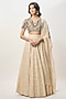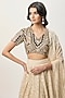 Featuring a beige lehenga in katarwa base. It is paired with a georgette choli having mirror embroidery and a mukaish mul dupatta. Accentuate it with jewellery and heels for a festive occasion or wedding ceremony.