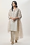 Beige Stripe Tissue Embroidered Kurta Set