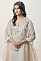 Featuring a beige kurta in stripe tissue base with embroidery. It is paired with modal satin tissue farshi salwar pants and an organza boota dupatta. Accentuate it with jewellery and heels for a festive occasion or wedding ceremony.