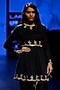 Featuring a black silk short kurta in silk with embroidered scallop hem. It comes along with a black half and half scalloped embroidered petal dhoti pants in silk.