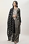 Featuring a black kurta in stripe tissue base with embroidery. It is paired with stripe palazzo pants and an organza dupatta. Accentuate it with jewellery and heels for a festive occasion or wedding ceremony.