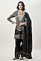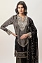 Featuring a black kurta in stripe tissue base with embroidery. It is paired with farshi salwar pants and a silk mul dupatta having mukaish dot details. Accentuate it with jewellery and heels for a festive occasion or wedding ceremony.