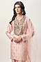 Featuring a blush pink kurta in chiniya silk base with embroidery. It is paired with jogger pants and a mukaish net dupatta having bead details. Accentuate it with jewellery and heels for a festive occasion or wedding ceremony.
