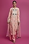 Featuring a blush pink kurta in mukaish silk base with embroidery. It is paired with matching palazzo pants and a net mukaish dupatta.