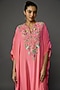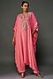 Featuring a coral jumpsuit in crepe base scalloped details and embroidery. Style it with dangler earrings and heels for a complete look.