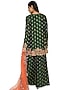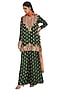 Featuring an emerald green kurta in bandhani silk base with embroidery. It is paired with matching palazzo pants and an orange mukaish net dupatta.