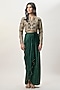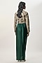 Featuring an emerald green choli in georgette base with embroidery. It is paired with a modal satin draped dhoti skirt. Accentuate it with jewellery and heels for a festive occasion or wedding ceremony.
