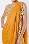 German Mustard Crepe & Mukaish Georgette Embroidered Pant Saree Set