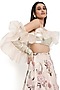 Payal Singhal features a mesmerizing Gold And Stone Color Lehenga Set that captivates with its elegance. The eye-catching lehenga is crafted in velvet with embroidery. It is paired with a leather one-sleeve choli having organza ruffles. Style the designer lehenga set with statement jewellery and heels for a wedding or engagement ceremony, showcasing style and sophistication.
