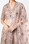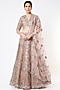 Featuring a light rose pink lehenga in organza base with zardosi embroidery and floral print. It is paired with a matching blouse and a dupatta.