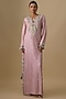 Featuring a lilac long kaftan in dola silk base with resham and thread embroidery. Accentuate it with dangler earrings and stilettos, great for a festive occasion or cocktail ceremonies.