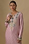 Lilac Dola Silk Thread Embroidered Long Kaftan