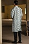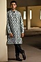 Featuring a powder blue kurta in silk base with ogee print. It is paired with contrasting black cotton silk churidar pants.