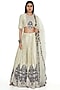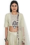 Featuring a mint lehenga in banarasi silk base with embroidery. It is paired with an embroidered choli and a mukaish net dupatta. Style it with statement earrings and heels for a wedding or engagement ceremony.