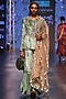 Featuring a mint blue short kurta in velvet base with embroidery. It is paired with a matching sharara pants in mukaish georgette base and coral dupatta in net base.