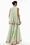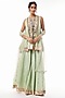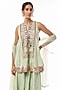 Featuring a mint green short anarkali in silk mul base with mirror and resham embroidery. It is paired with sharara pants and a mukaish net dupatta. Accentuate it with delicate kundan earrings, a soft-gold clutch and embroidered juttis for a stylish ensemble, ideal for festive celebrations or mehendi functions.