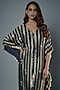 Featuring a navy blue striped kaftan in banarasi georgette base with embroidery. Style it with some statement jewellery and a clutch.