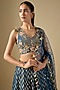 Featuring a navy blue lehenga in dash georgette base with embroidery. It is paired with an embroidered georgette blouse and a mukaish net dupatta. Accentuate it with zirconia or swarovski jewellery, embellished heels, a sleek bun and a potli bag for a sangeet look, wedding or engagement ceremony.
