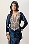 Featuring a navy blue kurta in velvet base with thread embroidery. It is paired with a modal satin dhoti skirt and an embroidered belt. Accentuate it with jewellery and heels for a festive occasion or wedding ceremony.