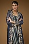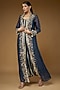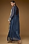Featuring a navy blue jacket in organza base with hand embroidery. It is paired with a georgette banarasi stripe bustier and palazzo pants. Perfect for a sangeet or festive occasion.