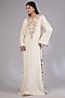 Featuring an off-white kaftan in dola silk base with resham embroidery and tassels. Accentuate with statement jewellery and heels for festive occasions.