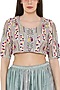 Featuring a pale blue lehenga in silk mulmul base. It is paired with an embroidered georgette blouse and a net dupatta having tassel detail. Accentuate this designer set with statement jewellery and heels for a complete look, ideal for a wedding, engagement, or sangeet ceremony.