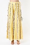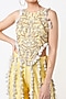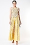 Featuring a pale yellow blouse in georgette base with zardosi embroidery. It is paired with matching mukaish silk mul sharara pants having tassels.