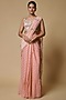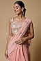 Featuring a pink pre-stitched saree in georgette base with applique embroidery. It is paired with a blouse. Accessorize this designer saree with heels and earrings for a festive look.