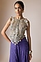 Featuring a purple top in georgette base with embroidery. It is paired with sharara pants. Accentuate it with kundan polki earrings and high heels for festive occasion or sangeet ceremony.