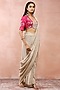 Payal Singhal features a mesmerising Silver Saree Set. Adorned with exquisite embroidery, the designer saree set will be a perfect fit for weddings and festive occasions. The silver saree is crafted in organza crushed tissue. It comes with a contrasting hot pink blouse.