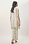 Featuring a silver kurta in stripe organza base with embroidery. It is paired with off-white brocade chanderi palazzo pants and a mul dupatta. Accentuate it with jewellery and heels for a festive occasion or wedding ceremony.